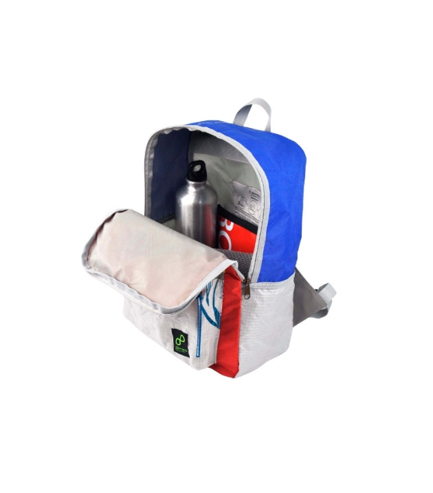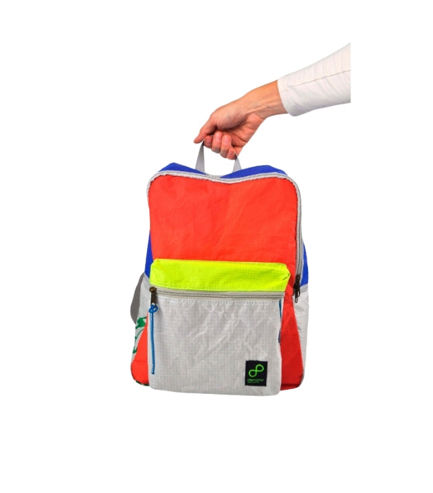 La mochila ALTEA esta hecha con cometas de Kitesurf recicladas.