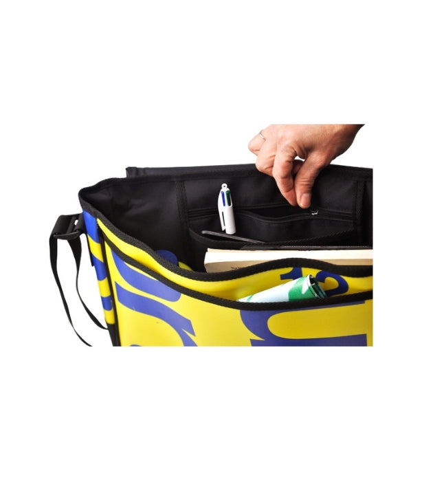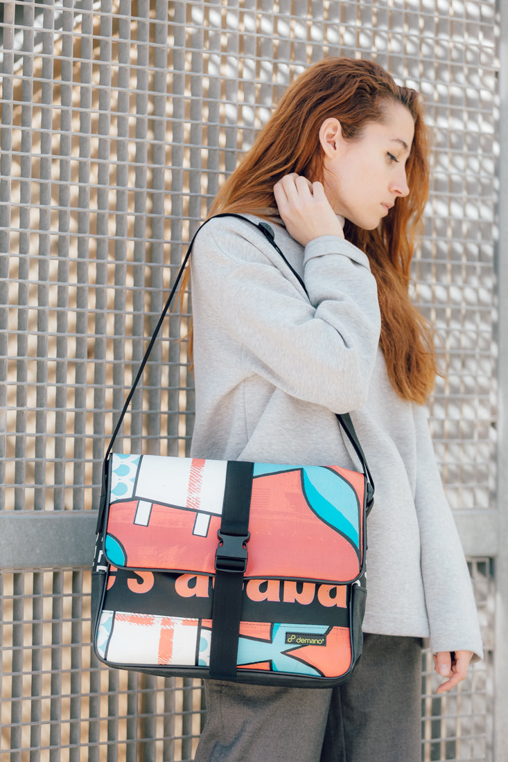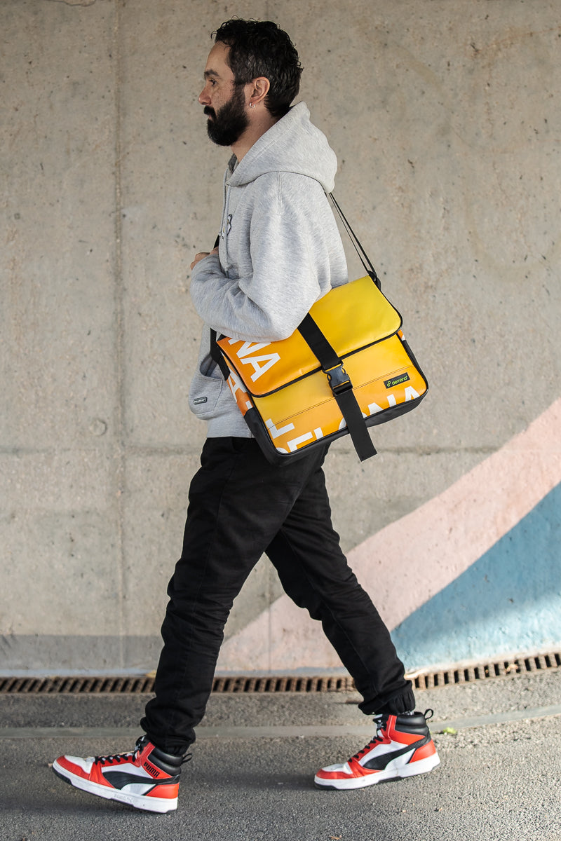 El bolso BORNE ofrece gran capacidad y resistencia. Su interior forrado permite transportar de forma segura un portátil de hasta 15". Cuenta con un bolsillo interior con cremallera para objetos de valor y otro exterior, cubierto por la solapa, de fácil acceso. La correa ajustable permite llevarlo cómodamente cruzado.