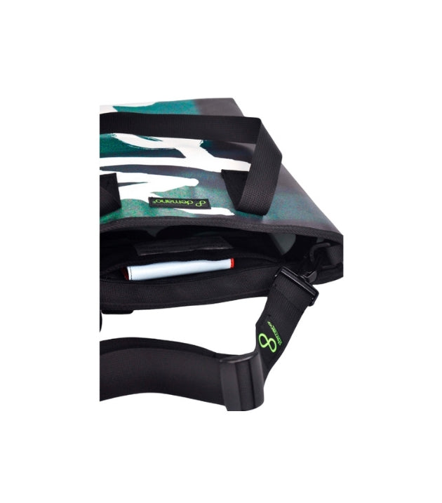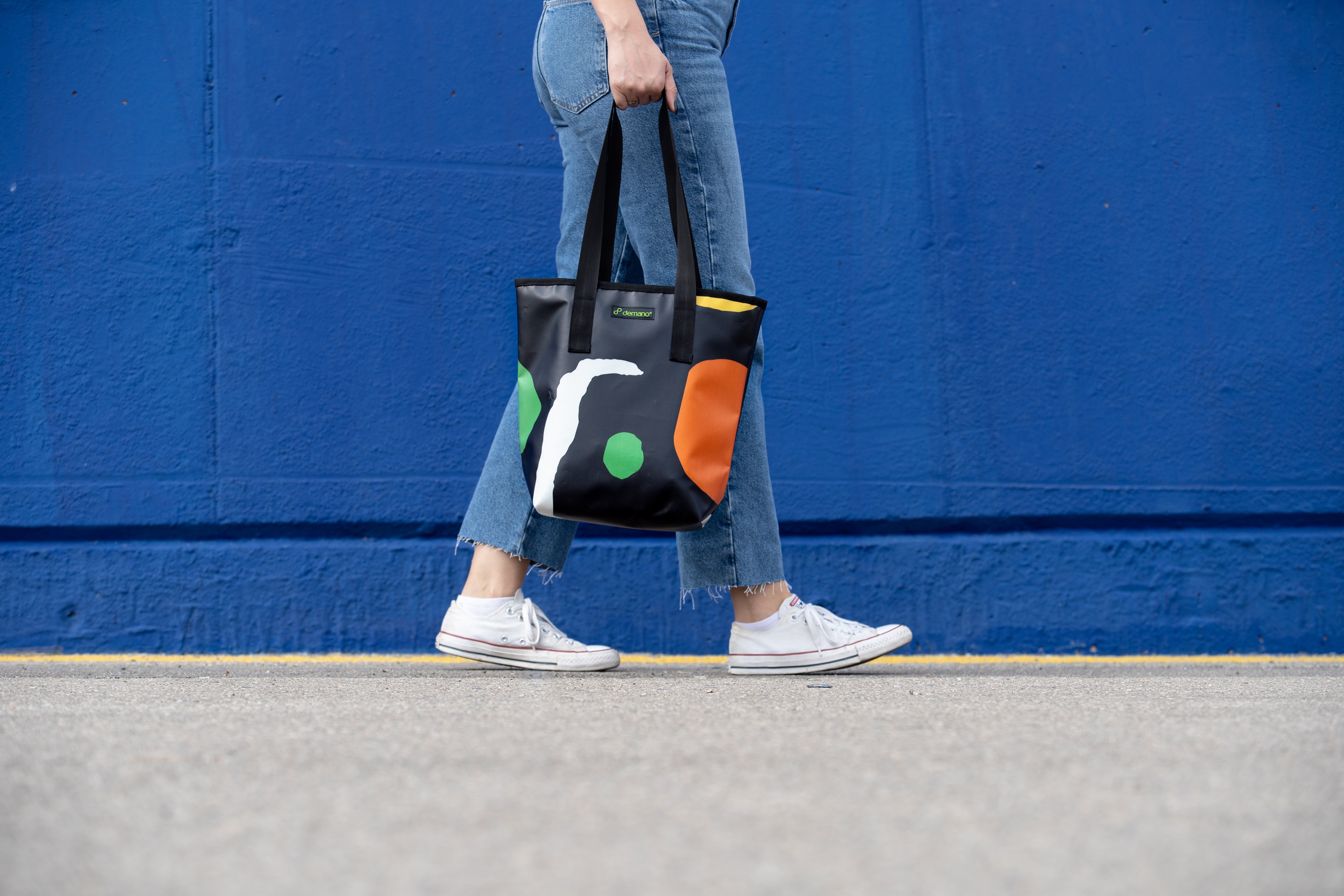 Está confeccionado con lona (PVC) de banderola que sirvió para difundir celebraciones y eventos especiales de la ciudad de Barcelona. Es impermeable, durable y súper resistente.