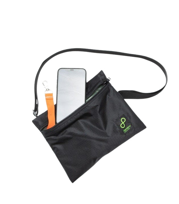 La puedes llevar al hombro o como riñonera. Ideal para llevar tus esenciales siempre a mano. El compartimento principal se cierra con cremallera y dentro tiene un bolsillo para tu móvil o billetera y un llavero naranja para que tengas tus llaves siempre a mano.