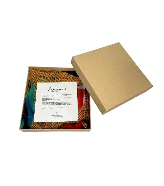 El resultado: un pañuelo elegante, suave y con carácter, que mezcla la energía urbana de Barcelona con la delicadeza del trabajo artesanal.