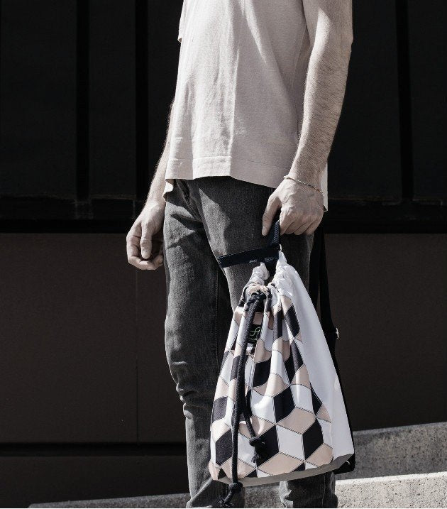 Convertimos este material en una mochila ligera con mucho espacio, ideal para ir a la playa, al gimnasio o como bolso de fin de semana.