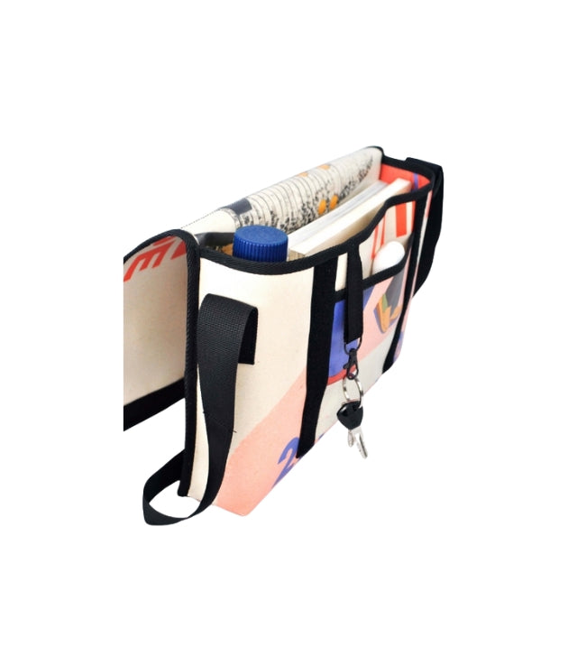 El bolso UNIVERSITAT M es impermeable y tiene un tamaño ideal para llevar tus documentos o portátil de hasta 13". Cuenta con un bolsillo interior y dos exteriores, siendo perfecto para tu ajetreado día a día.