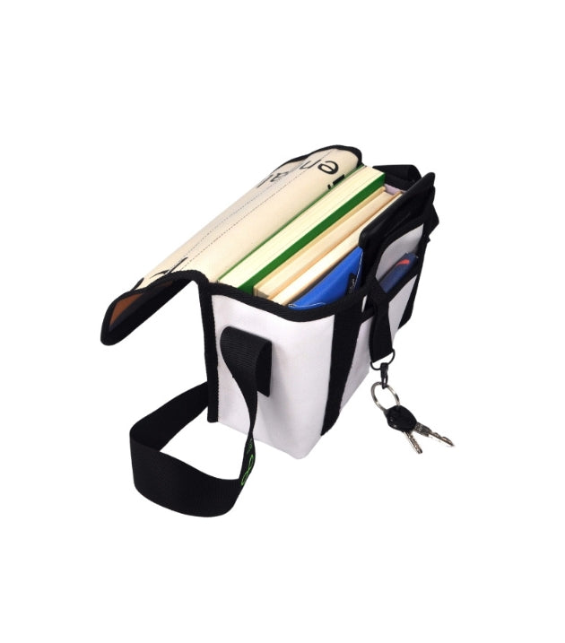 El bolso UNIVERSITAT XS es impermeable y de tamaño compacto, ideal para llevar tus objetos esenciales diarios. Cuenta con un bolsillo frontal y otro trasero seguro, lo que lo hace perfecto para tu ajetreada rutina.