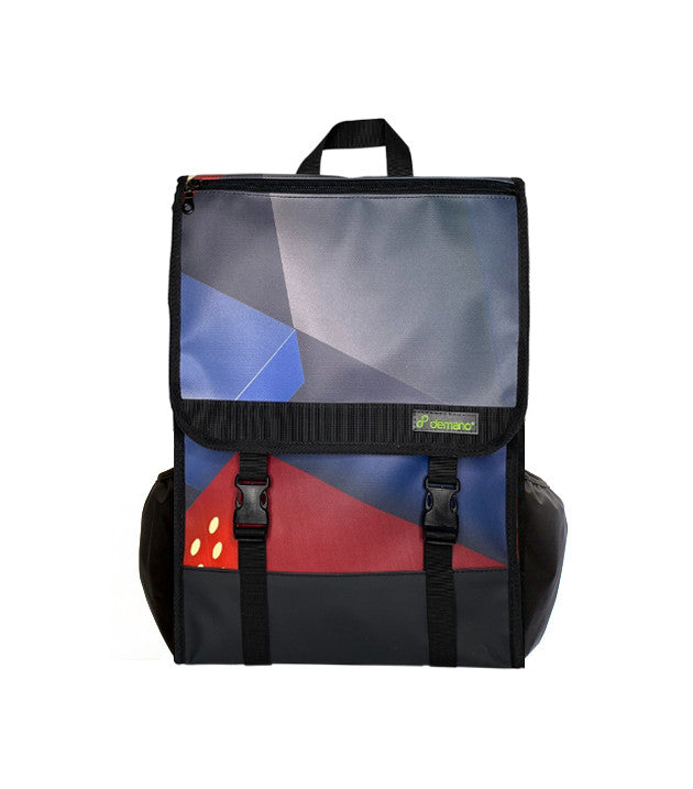 Por fuera tiene un bolsillo grande delantero, dos compartimentos laterales exteriores para llevar un paraguas o una botella de agua, y dos bolsillos con cremallera.