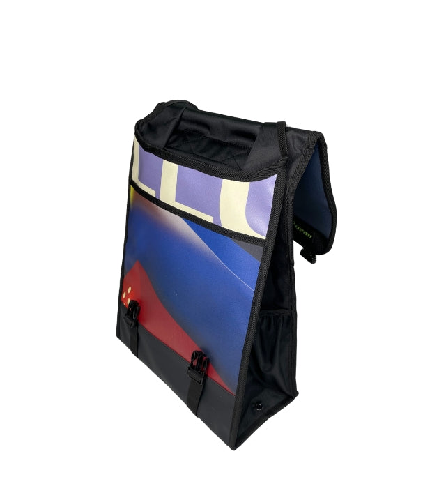 Mochila diseñada para engancharse al manillar de la bicicletas plegables Brompton o Vello. Tambien la puedes llevar cómodamente en la espalda cuando no está conectada a la bici. Tiene una gran capacidad. Reforzada para soportar mucho peso.