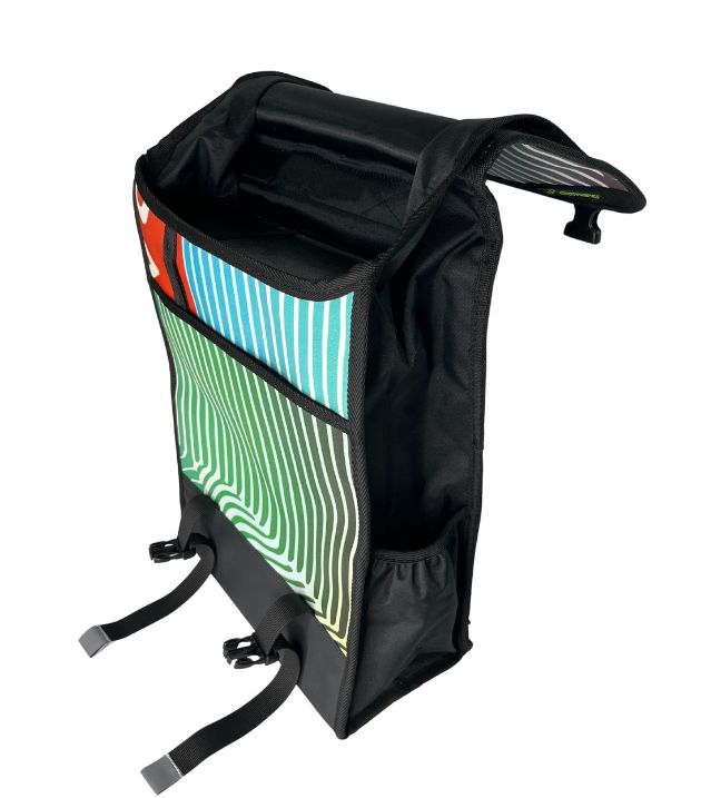 Mochila diseñada para engancharse al manillar de la bicicletas plegables Brompton o Vello. Tambien la puedes llevar cómodamente en la espalda cuando no está conectada a la bici. Tiene una gran capacidad. Reforzada para soportar mucho peso.
